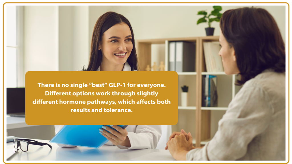The truth is, different GLP-1 options can lead to very different weight-loss results. Not because one is “better,” but because they work on the body in slightly different ways.